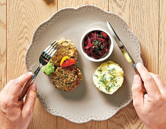 3. Z mięsa uformuj płaskie kotlety, obtocz je w panierce i usmaż na rozgrzanym oleju.