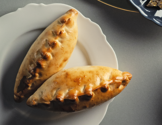 3. Ciasto podzielić na cztery części. Zawinąć pierożki i piec je w 200 stopniach przez 20 minut.