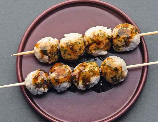4. Pulpeciki nadziać na patyczki i polać sosem.