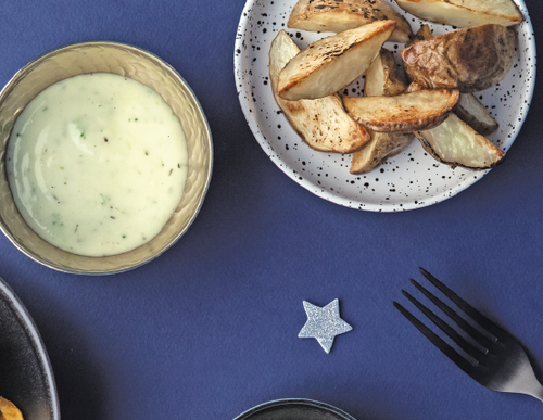 1. Sos przygotować według opisu na opakowaniu. Ziemniaki pokroić na mniejsze kawałki.