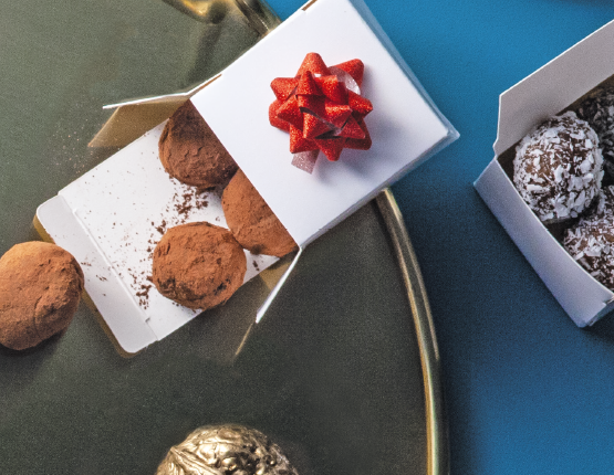 2. Następnie dodać sok z cytryny i kaszę mannę. Uformować kulki i obtoczyć połowę w wiórkach, a drugą połowę w kakao.