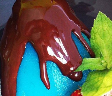 1. Gruszki obieramy zostawiając ogonek, od spodu wycinamy gniazda nasienne. Do rondelka wlewamy wodę tyle, aby gruszki były zakryte. Dodajemy sok z cytryny, syrop curacao i cukier do smaku. Opcjonalnie możemy dodać barwnik niebieski, co ja uczyniłam chcąc uzyskać większą głębię koloru ;).Doprowadzamy do wrzenia i czekamy, aż rozpuści się cukier. Następnie do tak przygotowanego syropu wstawiamy nasze gruszki. Gotujemy na średnim ogniu, aż zrobią się szkliste i nabiorą pięknego niebieskiego koloru.Czekoladę rozpuszczamy w kąpieli wodnej.Do kieliszków/pucharków wstawiamy wystudzone gruszki, polewamy je likierem (według własnego gustu) ok. 1-2 łyżek. Gruszkę polewamy rozpuszczoną czekoladą i obok układamy porcję ulubionego dodatku (bita śmietana, lody, krem). Dekorujemy ulubionymi owocami.Mi pozostaje życzyć wszystkim tylko smacznego ;).