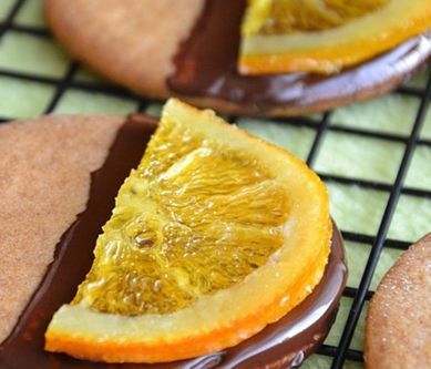 1. Do miski wsypać mąkę, cukier puder, sodę i przyprawę do piernika. Dodać masło, miód i żółtko, zagnieść jednolite ciasto (tylko na początku zagniatania będzie wydawało się zbyt suche). Wstawić do lodówki na ok. 1 godzinę. Na lekko podsypanej mąką desce cienko rozwałkować ciasto. Szklanką wyciąć koła. Kłaść na blachę do pieczenia. Wstawić do piekarnika nagrzanego do 180 C, piec ok. 9-10 minut. Ostudzić. Czekoladę rozpuścić nad parą wodną, smarować nią do połowy piernika, od razu kłaść połówki kandyzowanych pomarańczy. Kłaść na kratce, zostawić do zastygnięcia czekolady.