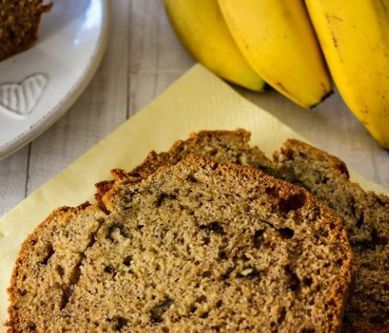 1. Banany zmiksować blenderem. Do masy bananowej dodać olej, jajko, jogurt i dokładnie wymieszać. Następnie wymieszać wszystkie suche składniki, tj. mąkę, cukier, sodę, cynamon, szczyptę soli. Do składników suchych wlać wymieszane składniki mokre. Wymieszać do połączenia. Na koniec dodać posiekane orzechy włoskie (orzechy można wcześniej uprażyć na suchej patelni). Ciasto wylać do wyłożonej papierem do pieczenia blaszki keksówki. Piec ok. 50 min. w piekarniku nagrzanym do 170 stopni.