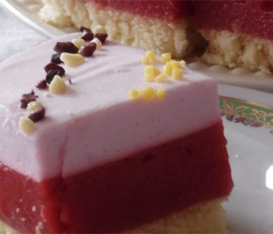 1. Upiec biszkopt: białka oddzielić od żółtek, białka ubić z cukrem. Gdy białka z cukrem będą ubite, dodawać po 1 żółtku, cały czas ubijając. Delikatnie przesiewać mąkę, mieszając drewnianą łyżką. Masę wylać do prostokątnej blaszki o wymiarach 24x34cm, wysmarowanej margaryną (wysmarować tylko dno, bez boków blaszki) i piec w temp 180 st C ok 30 minTruskawki mrożone zagotować z 1 szklanką cukru. Budynie rozpuścić w 1 szklance wody i dodać do truskawek i ponownie zagotować. Odstawić do ostudzenia. Kolejno dodać 1/2 kostki masła, wymieszać. Masę truskawkową rozłożyć na biszkopcie.Galaretkę rozmieszać w 300ml wrzątku, wystudzić i włożyć do lodówki w celu delikatnego stężenia. Śnieżkę ubić na mleku, pod koniec dodając śmietan fix, gdy będzie ubite dolewać stopniowo galaretkę, wymieszać delikatnie.Piankę wyłożyć na masie truskawkowej.