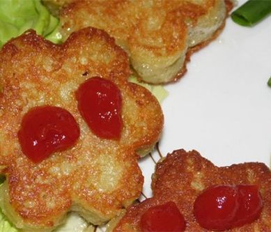 1. Ziemniaki obrać, umyć, zetrzeć na tarce o drobnych oczkach. Dodać jajko i przyprawić do smaku solą, pieprzem i wegetą, wymieszać. Dodać mąkę pszenną, wymieszać.Tłuszcz rozgrzać, ułożyć foremkę, napełnić masą ziemniaczaną. Gdy będzie usmażone z jednej strony na złoty kolor, przewrócić na drugą stronę (najlepiej za pomocą kombinerek - foremka będzie gorąca) i delikatnie nożem wypchać masę, smażyć z drugiej strony an złoty kolor.