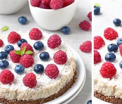 1. Rozpoczynam zrobienia spodu ciasta: wszystkie składniki wsadzam do blendera i mieszam ze sobą, tak aby masa była gęsta. Wykładam ją na blachę i formuję spód. Płatki jaglane gotuje na mleko, aż do momentu gdy płatki wchłoną cały płyn. Dodaje płatków kokosowych (zostawiam troszkę do posypania ciasta) i orzechów oraz ksylitol, a następnie wszystko mieszam. Przekładam na uformowany spód ciasta. Posypuję wiórkami i dekoruje owocami. Wkładam do lodówki na 2 godziny.