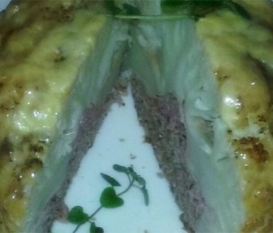 1. Z kalafiora wydrążyć głąb, tak by nie naruszyć konstrukcjikalafiora.Podgotować 10 min. Ostudzić.Surowe mięso mielone doprawić solą i pieprzem, ziołami. Dodać jajo, bułkę tartą. Faszerować dziurę po głąbie, wciskać mięso między przestrzenie poszczególnych różyczek. Można sobie pomóc drewnianą szpatułką, lub patyczkiem po lodach. Kalafior obłożyć serem gouda, zawinąć całego w folię aluminiową, włożyć do piekarnika i zapiekać ok. 30 min, w zależności od wielkości kalafiora. Pod koniec pieczenia odwinąć folię i pozwolić zapiec się serowi.