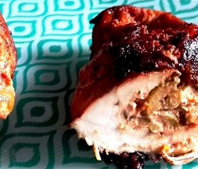 1. Mięso płuczemy i rozbijamy lekko, a potem dzielimy na płaty. Osuszamy z nadmiaru płynów. Każdy płat nacinamy w środku ostrym nożem, by powstała prostokątna kieszonka - 3 boki zamknięte, 1 bok z nacięciem. :) Na tym etapie możemy jeszcze rozbić nieco, żeby nie były zbyt grube. Kieszonki umieszczamy w marynacie BBQ wg instrukcji na torebce. Po zamknięciu miętosimy, żeby mięso spotkało się z marynatą z każdej strony. :) Odkładamy do lodówki na minimum godzinę, a najlepiej - na 3 godziny (można też na noc, dzień przed grillowaniem - jest wtedy mega-aromatyczne!). Pomidory kroimy na cząstki, podobnie oliwki, rwiemy też na kawałki mozzarellę. Mieszamy z orzechami włoskimi (posiekanymi) serkiem topionym i przyprawiamy wg uznania. :) Można dodać oliwy, ale tylko jeśli pomidory są suche - jeśli były w oliwie, nadzienie będzie dość tłuste. :) Każdą kieszonkę nadziewamy tą mieszanką. Spinamy otwór wykałaczkami. Grillujemy na złoto (można na zwykłym grillu, można na elektrycznym). Czas zależy od grubości mięsa - im cieniej rozbite, tym krócej pichcimy, warto się postarać.