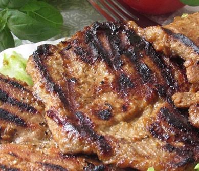 1. Karkówkę umyć, osuszyć, pokroić w plastry. Musztardę wymieszać z miodem, oliwą, dodać przyprawy i przeciśnięty przez praskę czosnek.Mięso dokładnie obtoczyć z każdej strony w marynacie,ułożyć w misce, odstawić do lodówki na około 3 godziny. Po tym czasie smażyć na grillu 15 - 20 minut, co jakiś czas odwracając.