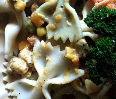 1. Warzywa gotujemy na parze - u mnie dzieje się to za sprawą parowaru i trwa ok. 1/2 godziny. Makaron gotujemy w stosownej ilości wody al dente i następnie odcedzamy. Wylewamy z garnka wodę. Na dno osuszonego garnka wlewamy 2-3 łyżki oleju z pomidorów - z przyprawami. Podgrzewamy. Rzucamy na to posiekany drobniutko czosnek i lekko przysmażamy na oleju rzepakowym - byle się nie spalił. Łopatkę myję, osuszam i kroję w kostkę, przyprawiam do smaku i dorzucam do garnka. Po podsmażeniu jej dorzucam warzywa z pary i przyprawy. Mieszam i podsmażam kilka minut, a następnie zalewam śmietaną i mieszam, dorzucając część sera. Na końcu w tak powstałej mieszance taplam pomidory pokrojone na kawałki i makaron. Podgrzewam całość, ewentualnie doprawiam do smaku i... już. :) SMACZNEGO! :)