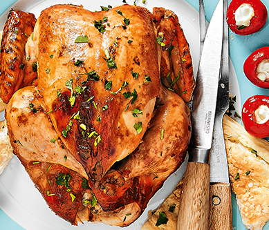 2. Wstaw tuszkę do piekarnika rozgrzanego do 180°C i piecz ok. 90 minut, co jakiś czas polewając ją tworzącym się sosem.