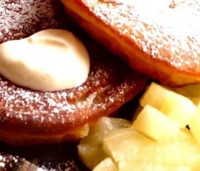 3. Krążki ananasa obtaczam w mące, następnie za pomocą widelca panieruję w cieście. Smaże na rozgrzanym oleju na małym gazie.