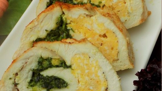 1. Filety pokroić na plastry, lekko rozbić tak aby nie zrobić dziur. Mięso ułożyć na folii spożywczej lub aluminiowej na kształt prostokąta, zakładając kawałki jeden za drugi. Natrzeć przyprawami.