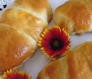1. Ciasto drożdżowe: Drożdże rozcieramy z cukrem i cukrem waniliowym, odstawiamy na chwilę do wyrośnięcia. W misce łączymy przesianą mąkę, jogurt, masło, żółtka i podrośnięte drożdże. Ciasto starannie zagniatamy (będzie dość luźne i lepkie – takie ma być), formujemy kulę, oprószamy mąką, przykrywamy ściereczką i odstawiamy na 1 godzinę do lodówki, aby się dobrze schłodziło.Mus: Jabłka obieramy, wycinamy gniazda nasienne i drobno kroimy. Wkładamy do garnka z grubym dnem, skrapiamy sokiem z cytryny i dusimy na małym ogniu, mieszając do momentu aż rozgotują się na mus. Dodajemy banana rozgniecionego widelcem i połamaną czekoladę. Mieszamy aż czekolada się rozpuści i odstawiamy do przestudzenia. Wykonanie: Schłodzone, wyrośnięte ciasto wyjmujemy z lodówki. Dzielimy je na 2 równe części i każdą rozwałkowujemy na koło o grubości ok. 3-4 mm. Z koła wycinamy 8 równych trójkącików. Na ich szerszej części wykładamy 1 łyżkę musu i starannie zwijamy tworząc długi rogaliki, którego końce zaginamy pod spód. Układamy na blasze wyłożonej papierem do pieczenia. Przykrywamy ściereczką i odstawiamy na 30 min. do wyrośnięcia. Po tym czasie smarujemy jajkiem roztrzepanym z 2 łyżkami mleka i wkładamy do piekarnika z termoobiegiem rozgrzanego do 1600C (lub do 1800C bez termoobiegu) na ok. 20 – 25 min. Drożdżówki powinny się ładnie zarumienić. Studzimy na kratce.