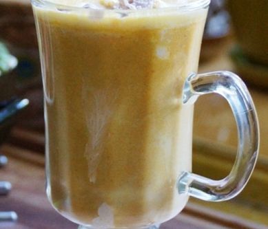 1. Mleko zagotowujemy z pokrojoną w drobną kostkę marchewką i dynią. Kiedy warzywa będą miękkie- co dzieje się szybko, jeśli pokroimy je drobno, dodajemy miód i przyprawy i całość dokładnie blendujemy. Napój przelewamy do szklanki, dekorujemy kleksem serka. Podajemy od razu- gorący i aromatyczny.