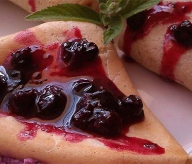 1. Składniki ciasta na naleśniki należy ze sobą dokładnie wymieszać aby nie było żadnej grudki, najlepiej mikserem albo rózga .Jesli ciasto jest za rzadkie dodac mąki jeśli za geste, dolac mleka. Odstawic na kilka minut. Porzeczki opłukać w wodzie, odsaczyc i wyłozyc na sucha patelnie. Wsypac cukier (każdy doda wedle swego upodobania) Mieszac łyzką delikatnie je rozdrabniając aby powstał mus. Smazyc jeszcze chwilke i odstawić do przestygnięcia. Ser rozgnieść widelcem i dodac do niego pół musu z porzeczek, drugą połowe zostawić do dekoracji naleśników. Jesli uważamy ze masa serowa jest za mało słodka możemy ja jeszcze dosłodzić odrobiną cukru. Nalesniki smażymy na rumiano z każdej strony na odrobinie oleju. Smarujemy masa serowa, składamy a na wierzchu dekorujemy pozostałym musem i listkami miety.Danie jest wyjątkowo łatwe do wykonania, więc nasze dzieci bez problemu sobie z nim poradzą ;-)
