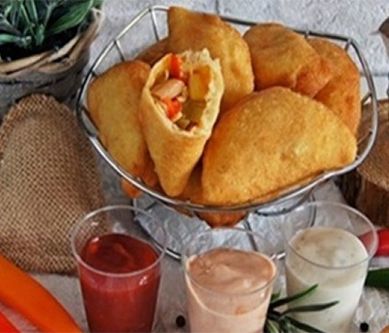 1. Mleko podgrzać,rozpuścić w nim drożdże, łyżkę mąki i cukier. Przykryć ścierką i odstawić do wyrośnięcia w ciepłe miejsce.Do wyrośniętych drożdży dodać pozostałą mąkę, jaja oraz sól. Wyrobić gładkie i elastyczne ciasto. Zostawić do wyrośnięcia.Fileta umyć, pokroić w kostkę, usmażyć na rozgrzanym oleju. Przyprawić obficie przyprawą kebeb-gyros.Paprykę umyć, usunąć gniazda nasienne, pokroić w kosteczkę.Cebulę obrać, pokroić również w kostkę.Kapustę pekińską oczyścić i drobno posiekać.Ogórki pokroić w kosteczkę, odsączyć.Kukurydzę odcedzić.Wszystkie składniki wymieszać, dodać wystudzonego fileta, połączyć z keczupem i majonezem. Dokładnie wymieszać, przyprawić solą i pieprzem.Czosnek obrać, przecisnąć przez praskę, dodać do reszty składników.Ciasto wałkować małymi porcjami, wycinać krążki szklanką. Na każdy krążek nałożyć farszu, zlepić dokładnie brzegi, żeby nie rozkleiły się podczas smażenia.Gotowe pierożki ułożyć na desce podsypanej mąką, przykryć ścierką i zostawić do wyrośnięcia.Smażyć w głębokim tłuszczu, na złoto z obu stron.Po wyjęciu osączyć na papierowym ręczniku.Podawać na ciepło z dodatkiem sosów.