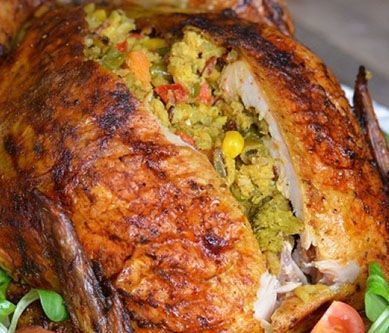 1. Marynata: wszystkie składniki marynaty dokładnie ze sobą wymieszać. Tuszkę z kurczaka umyć i osuszyć, usunąć kość korpusu, oprószyć solą, pieprzem i natrzeć wcześniej przygotowaną marynatą, odstawić na około 1 godzinę, a najlepiej na całą noc. Farsz: ryż ugotować al dente w lekko osolonym wrzątku z 2 łyżeczkami curry. Cebulę i czosnek drobno posiekać, zeszklić na oleju, dodać warzywa na patelnię oraz oczyszczoną i pokrojoną w kostkę paprykę. Podlać bulionem i dusić aż warzywa będą miękkie a płyn odparuje. Na samym końcu doprawić solą, pieprzem, curry, miodem, dodać ugotowany ryż i całość dokładnie wymieszać. Tuszkę z kurczaka napełnić farszem, dokładnie zaszyć i związać nogi. Gotowego kurczaka przełożyć (piersiami do góry) do wysmarowanego olejem naczynia żaroodpornego i podlać piwem. Wstawić do piekarnika nagrzanego do 180 stopni i piec przez około 90-100 minut. Smacznego :)