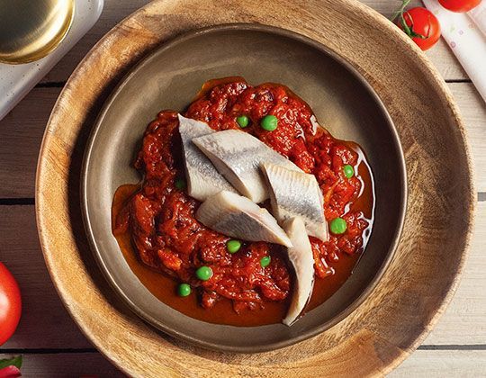 1. Na oleju podsmażyć posiekaną cebulę i czosnek. Gdy warzywa zmiękną, dodać paprykę, żurawinę, ocet, cukier i pomidory. Dusić przez 15 minut. Doprawić do smaku solą i pieprzem. Śledzie namoczyć w wodzie lub mleku, a następnie połączyć z zalewą. Podawać z groszkiem.